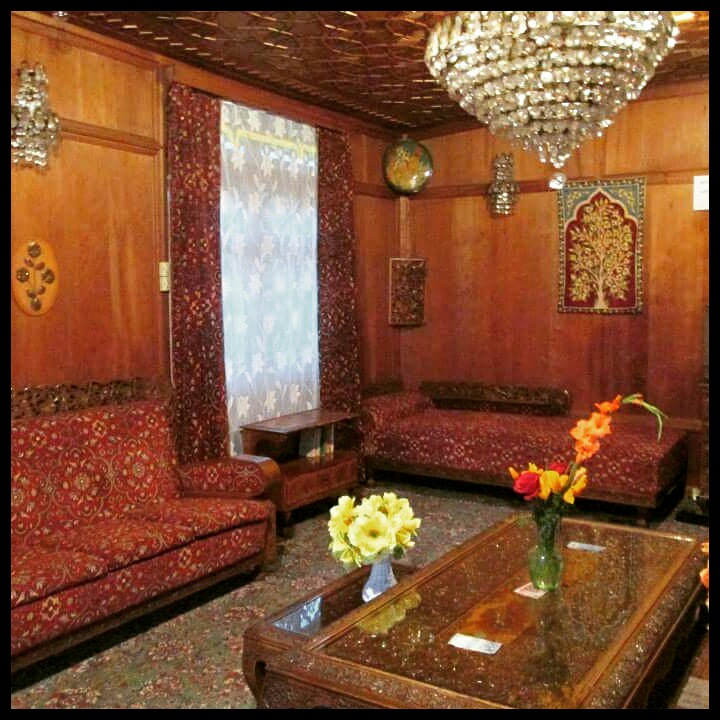 There were papier-mache wall hangings, paintings of the lake, traditional Kashmiri carpets, hookahs, and wooden carved furniture.