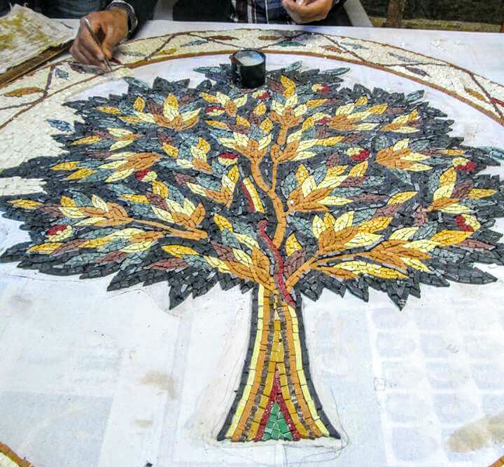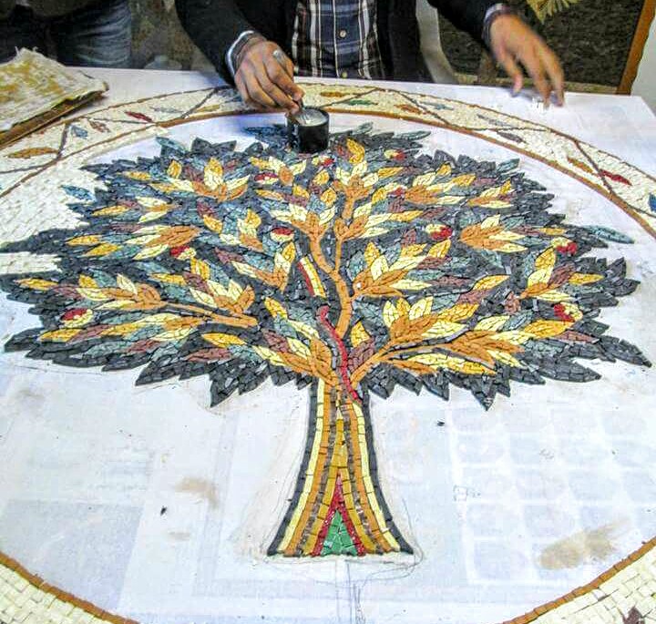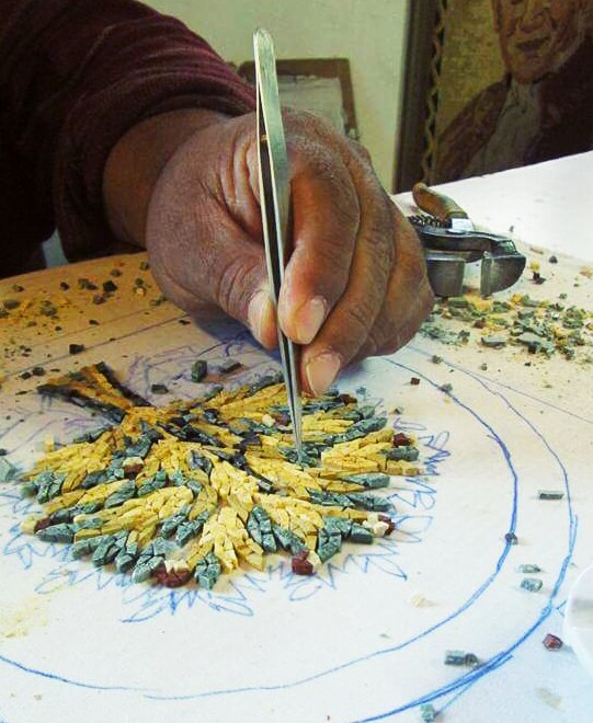 Mosaic making consists of pressing stone fragments (known as tesserae) into wet plaster to create detailed and ornate works of art. Today mosaic artists in Madaba produce an array of souvenirs and handicrafts used for a variety of purposes.