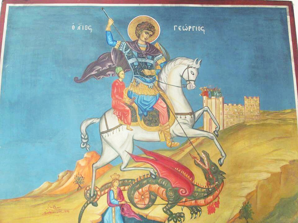 St. George is built upon the remains of an older church that housed this map. Built in the 19th century, this Greek Orthodox Church is of recent construction.