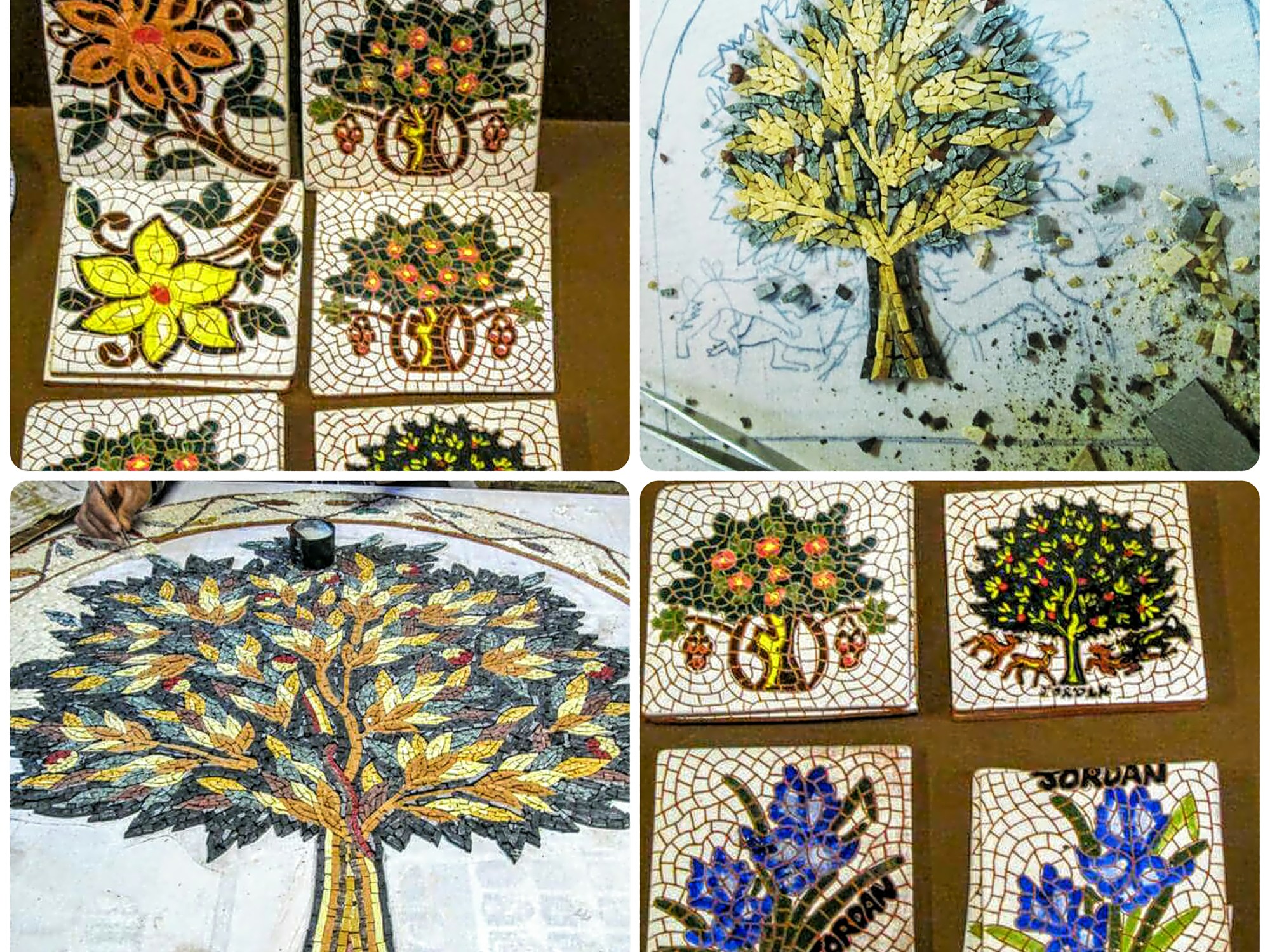 Mosaic making consists of pressing stone fragments (known as tesserae) into wet plaster to create detailed and ornate works of art. Today mosaic artists in Madaba produce an array of souvenirs and handicrafts used for a variety of purposes.