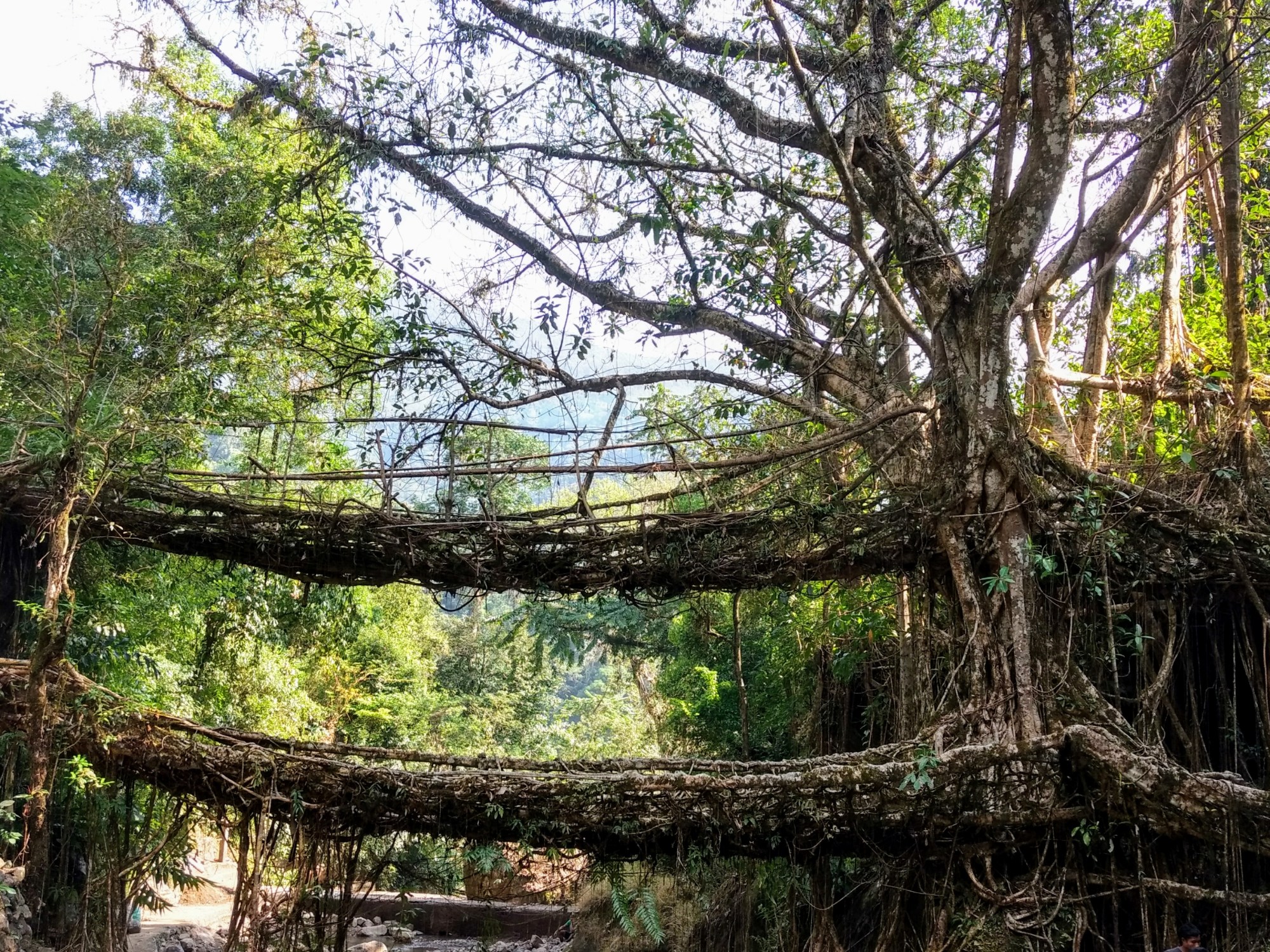 It takes around 15 years for such a bridge to naturally form. There are many such bridges around Meghalaya. But the biggest and unique bridges are the double decker bridges of Nongriat.