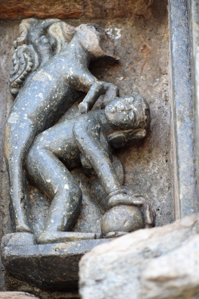 The exteriors have been patiently and intricately carved. The temple tower has finely sculpted designs similar to the temple architecture of Orissa. As I navigate the premises, the temple reveals itself gradually. These weather-beaten stones tell us stories of gods and goddess, from a forgotten period.