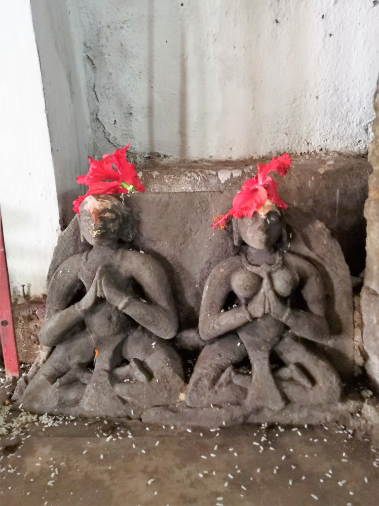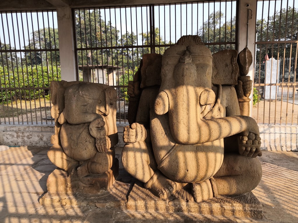 A gated enclosure houses the remains of two Ganeshaas, one bigger than the other. They were sculpted together for two sisters, which could be an explanation for the difference in size; however, we may never know this. Ruins around the Ganeshaas indicate the remains of a temple which had a shiv ling.
