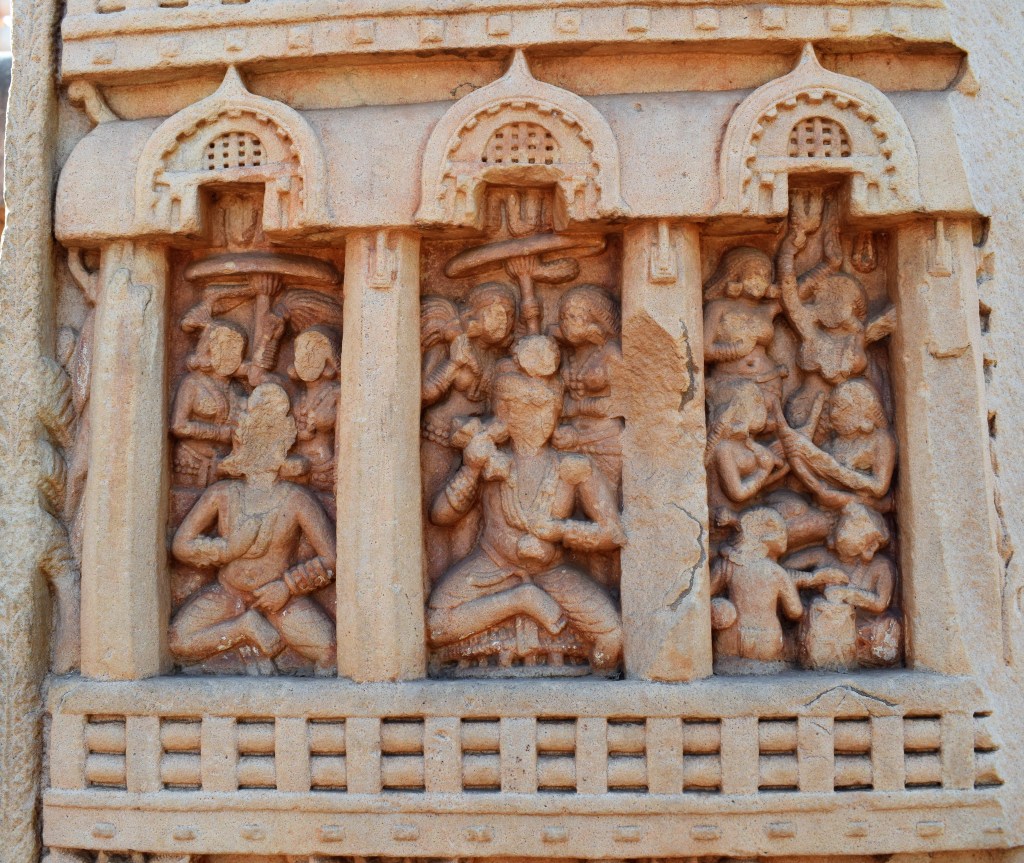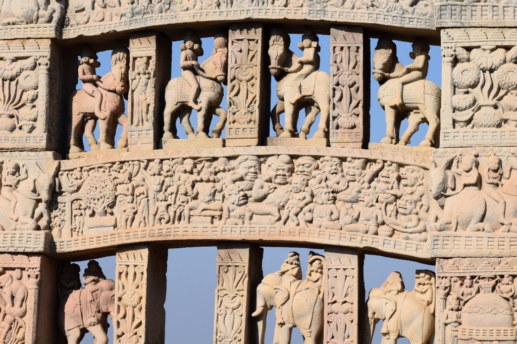 There are four gateways or entrances constructed around the dome. Each one is uniquely sculpted with fine details revealing the life of Buddha. It is a visual treat to see these images in stone.