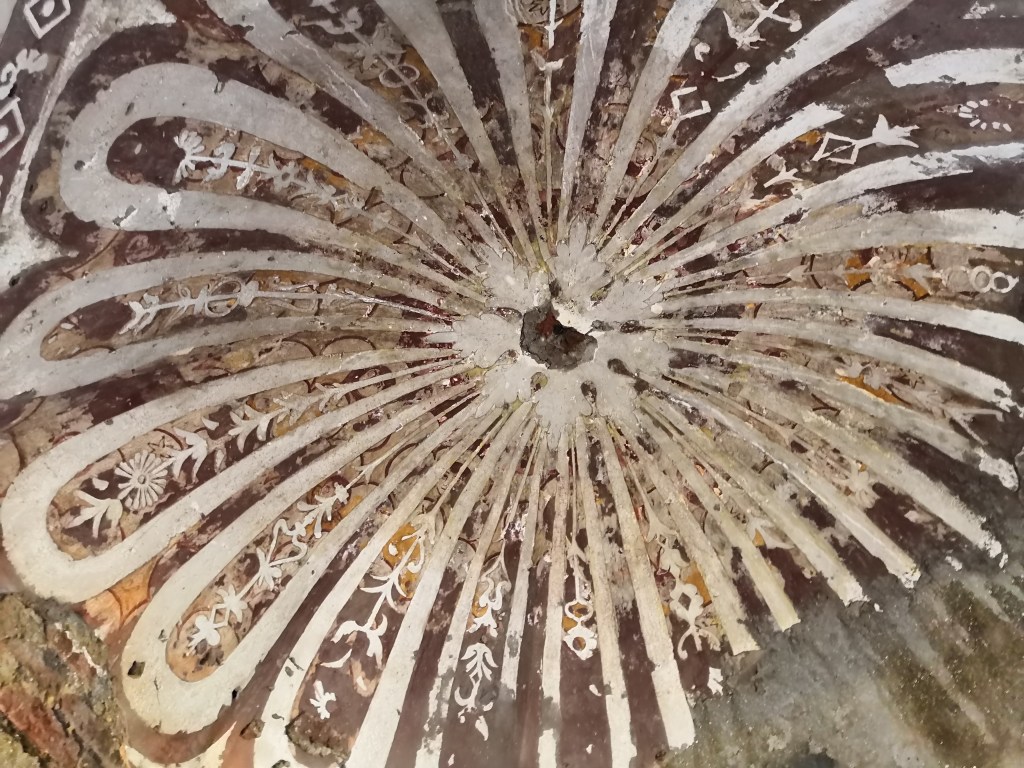 The pigments of white and red are clearly visible in the baptistery dome. St. Gonsalo Garcia, the patron saint of Vasai is believed to have been baptized here.