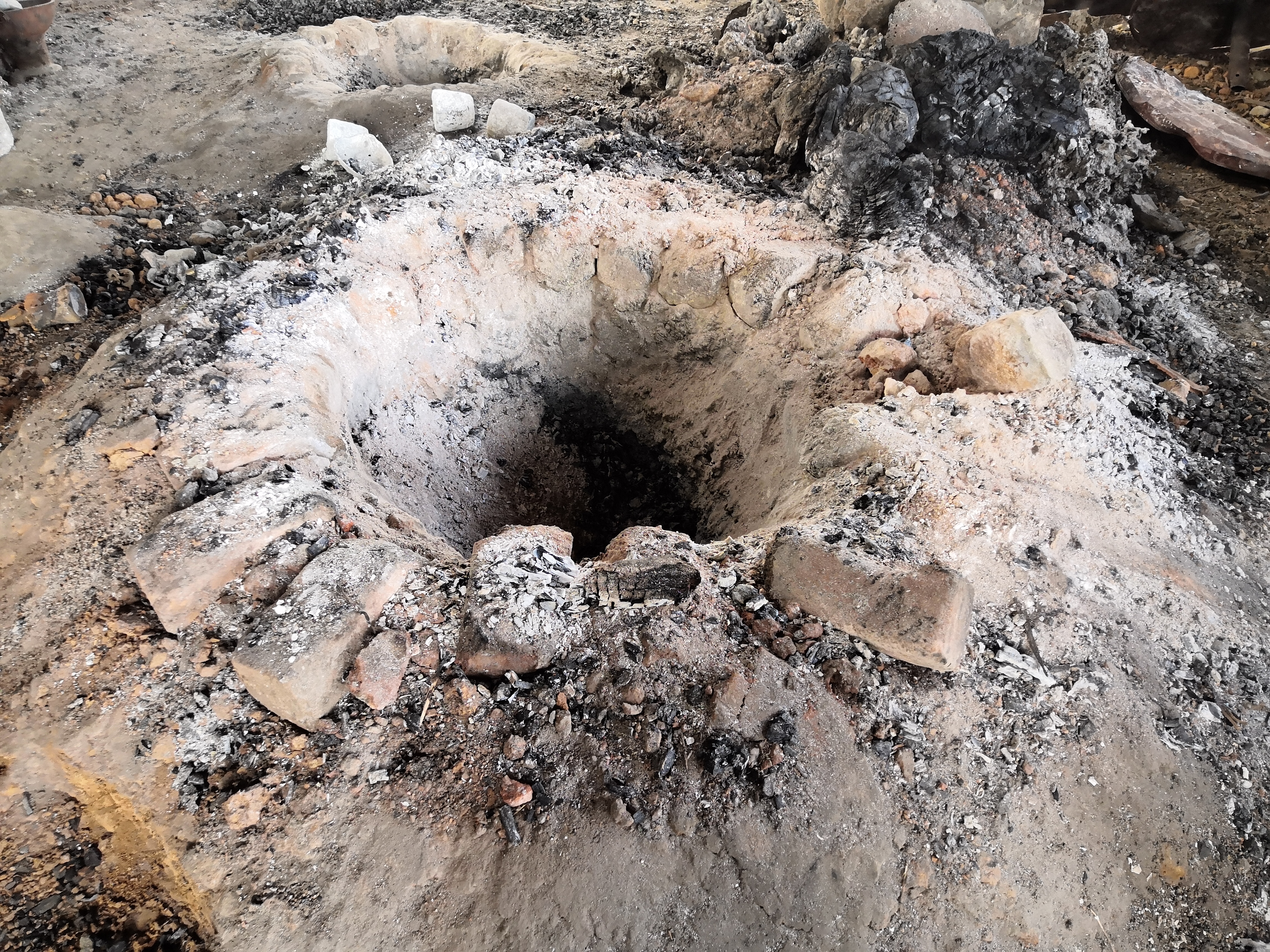 Scrap brass ware is melted, poured into this mould and left to cool. The clay mould is broken to reveal the finished piece. An exquisite, gleaming, and unique piece of art entirely made by hand is ready.