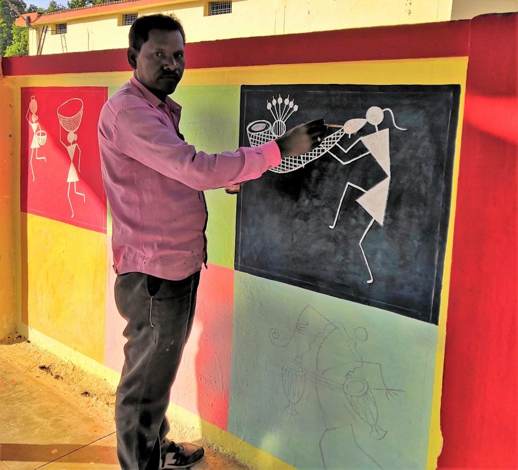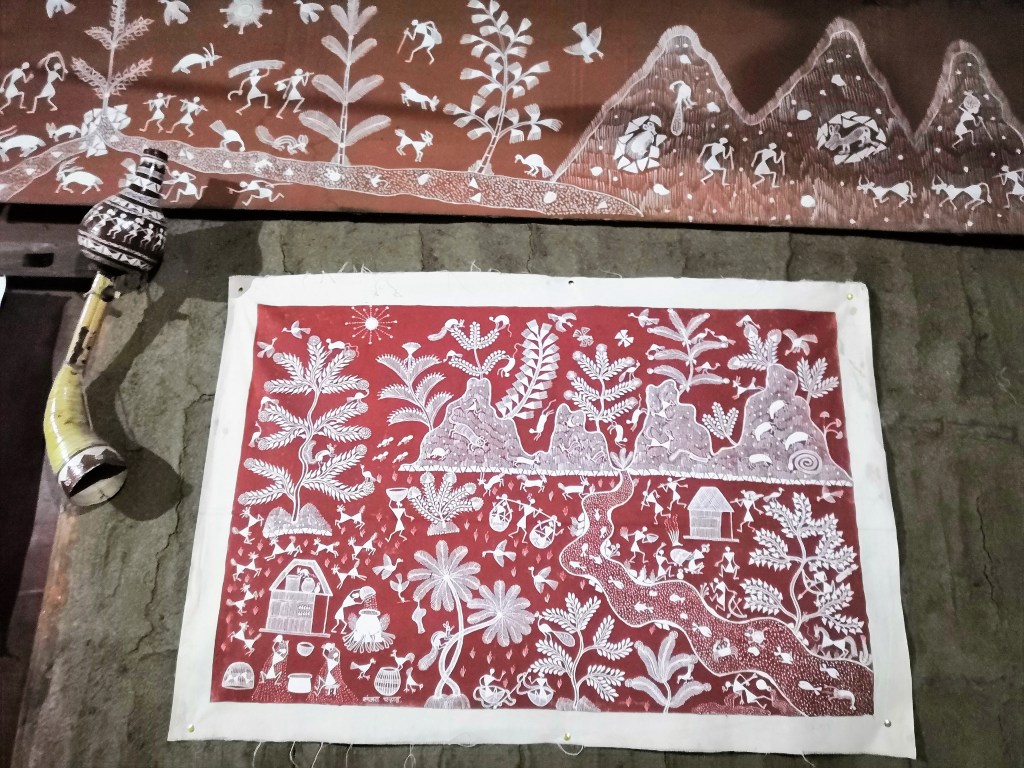 The walls of Sanjay’s home are adorned with Warli murals and paintings. He spoke about each one of them as a proud parent.