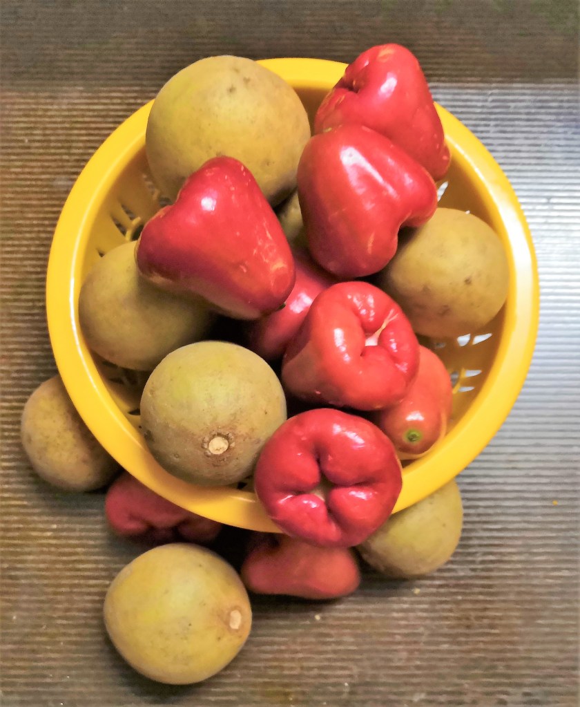 Rose Apples and Chickoos the local fruits