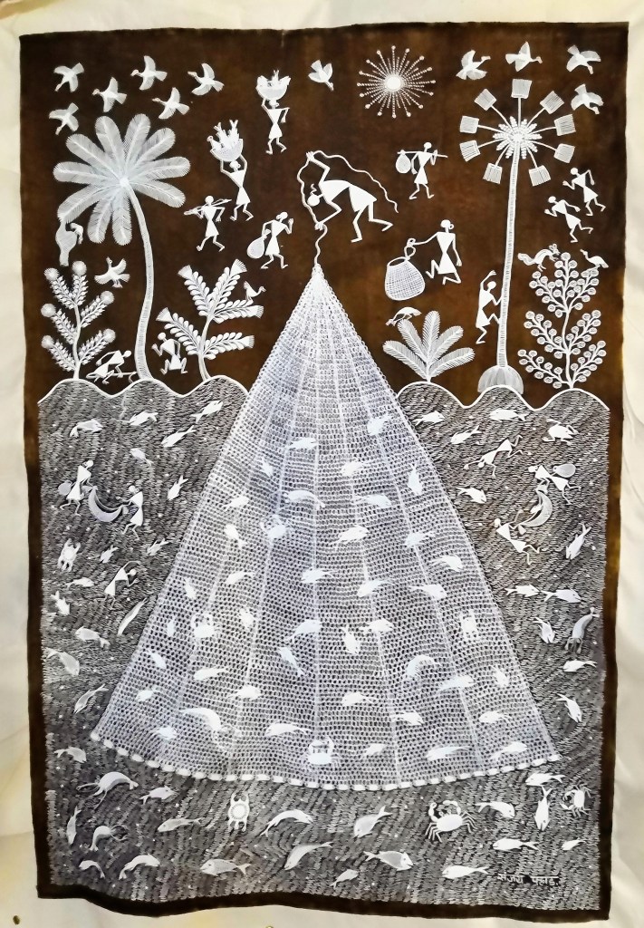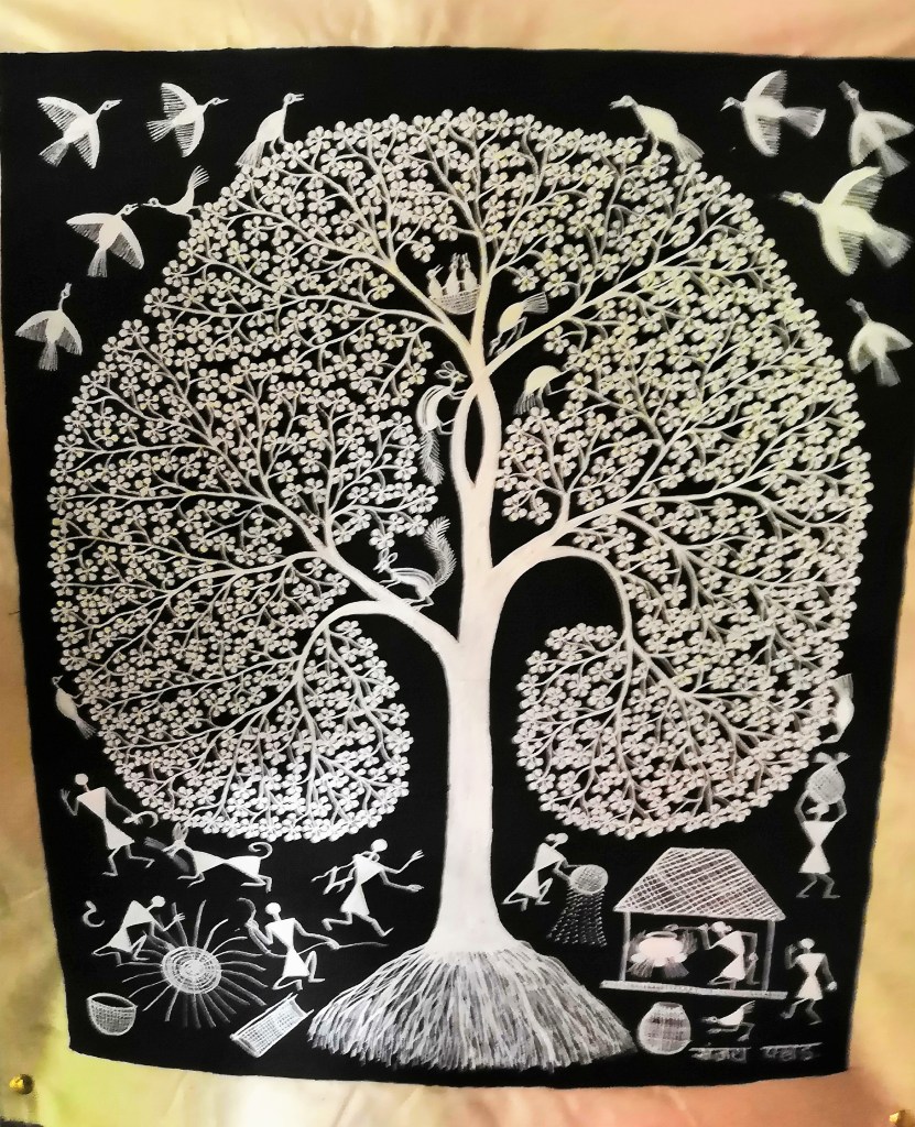 Warli art today, is widely practiced by many non warlis. They use technology and social media to promote their work. Sadly, the real warli artists are undiscovered and unknown as they are trying to catch up with these popular means of promotion.