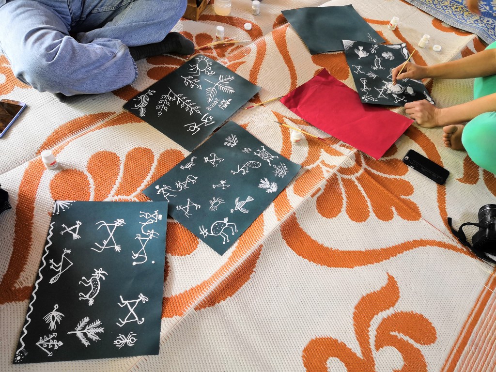 Recommended – This workshop was organized by Swadesee. This makes for an interesting day trip from Mumbai and a fun way to get to know the Warlis – https://swadesee.com/warli-tribe-art-village-experience