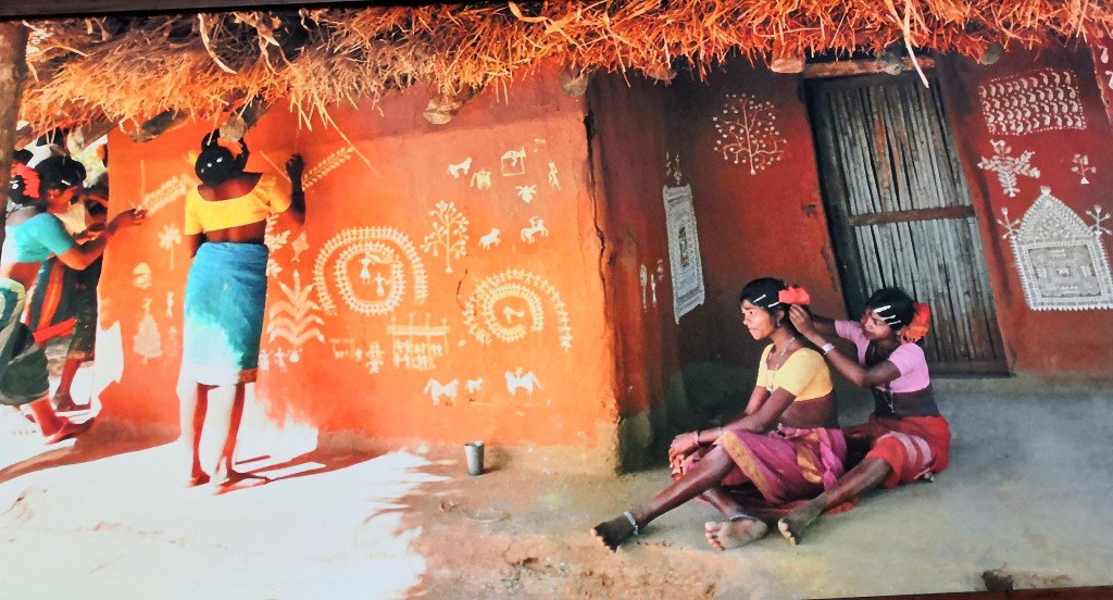 A Warli wedding scene, which has adopted Hindu customs and tradtions. Pic credit – MP Tribal Museum, Bhopal