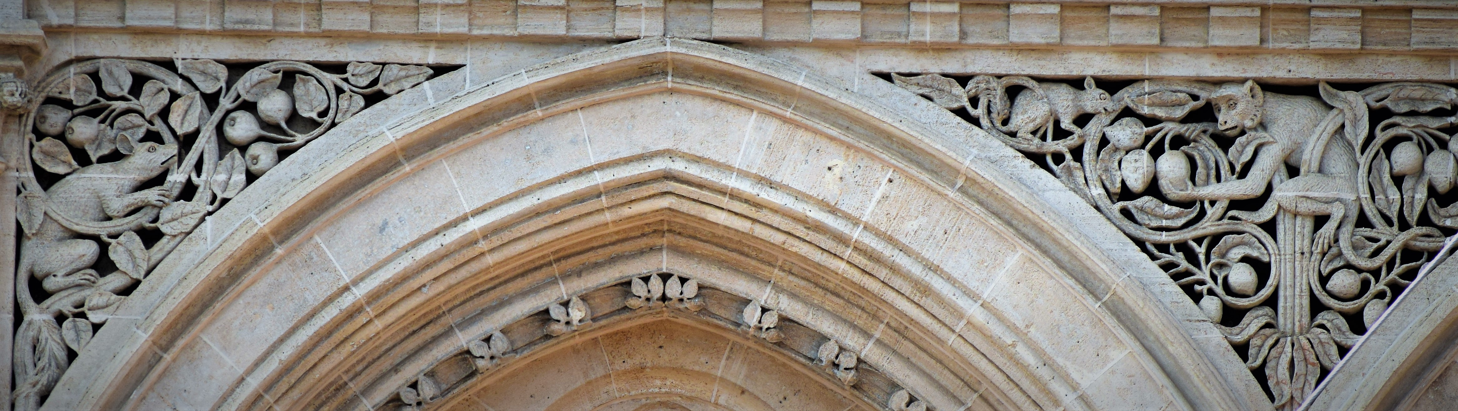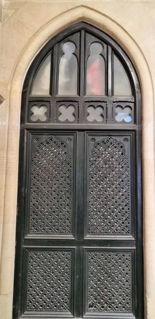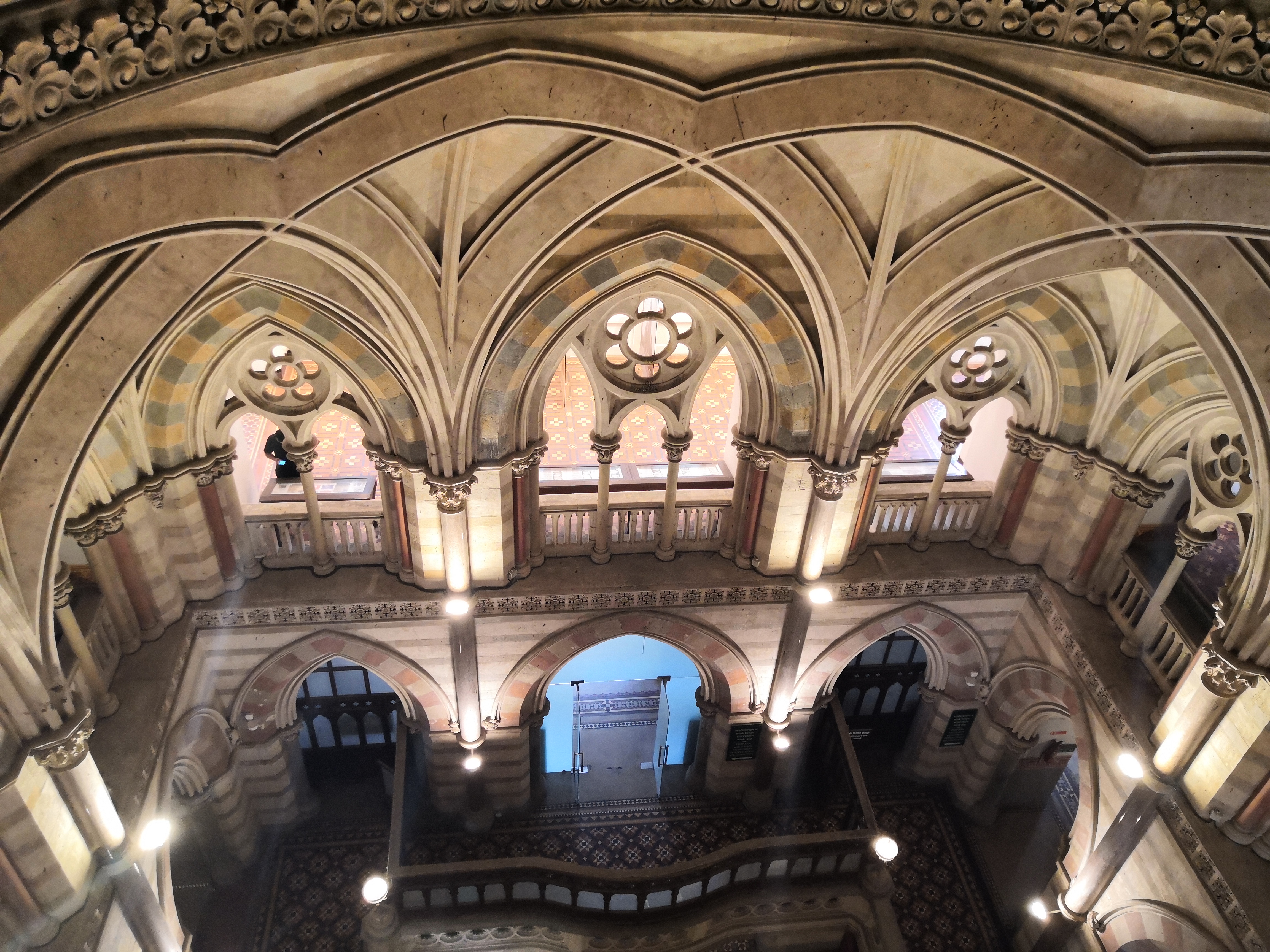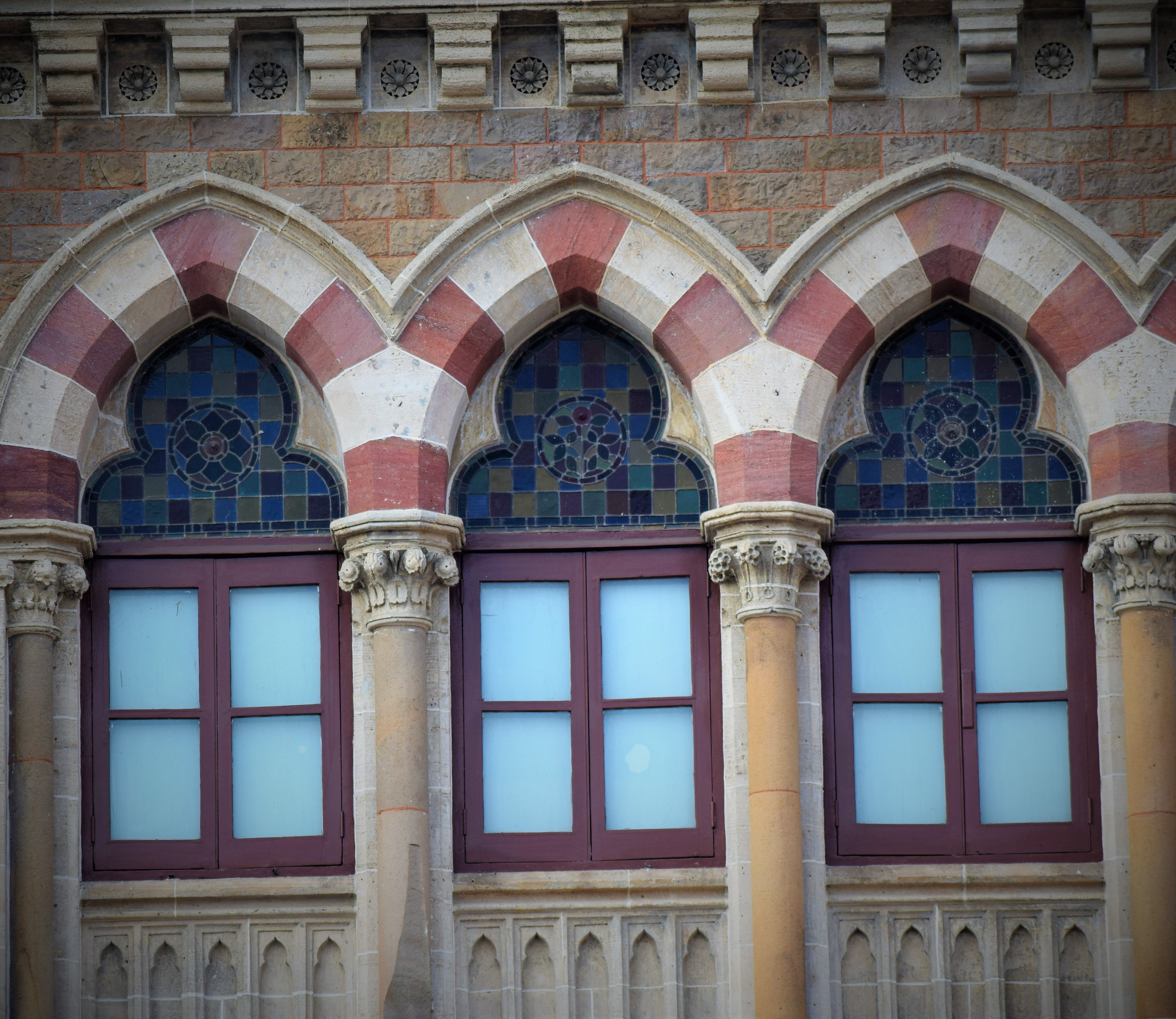 The architecture is a blend of gothic and Indian influences. Built from basalt rock, the building has three prominent domes, arched windows and winged lions at the façade.