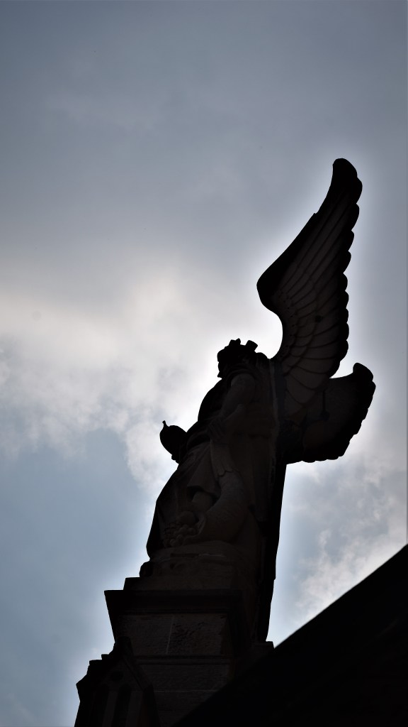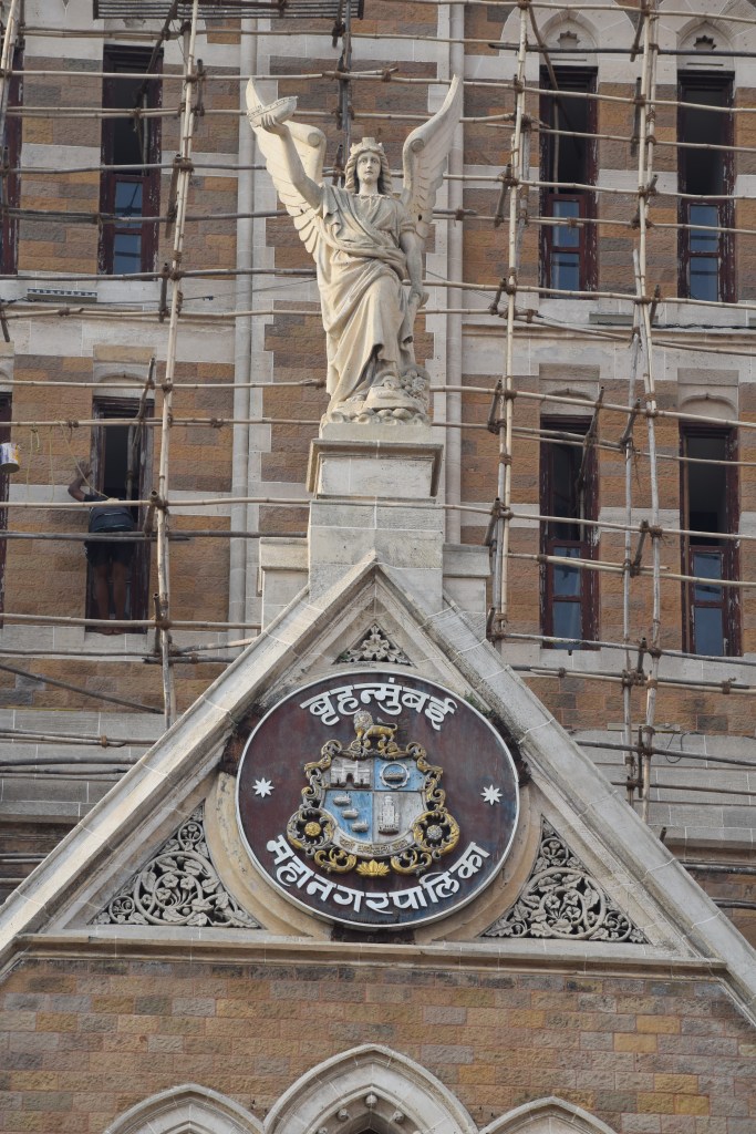 Urbs Prima stands proudly atop, the front façade, a winged lady with a ship in her hand. She symbolizes Bombay or Mumbai – the city that never sleeps / the city of dreams.