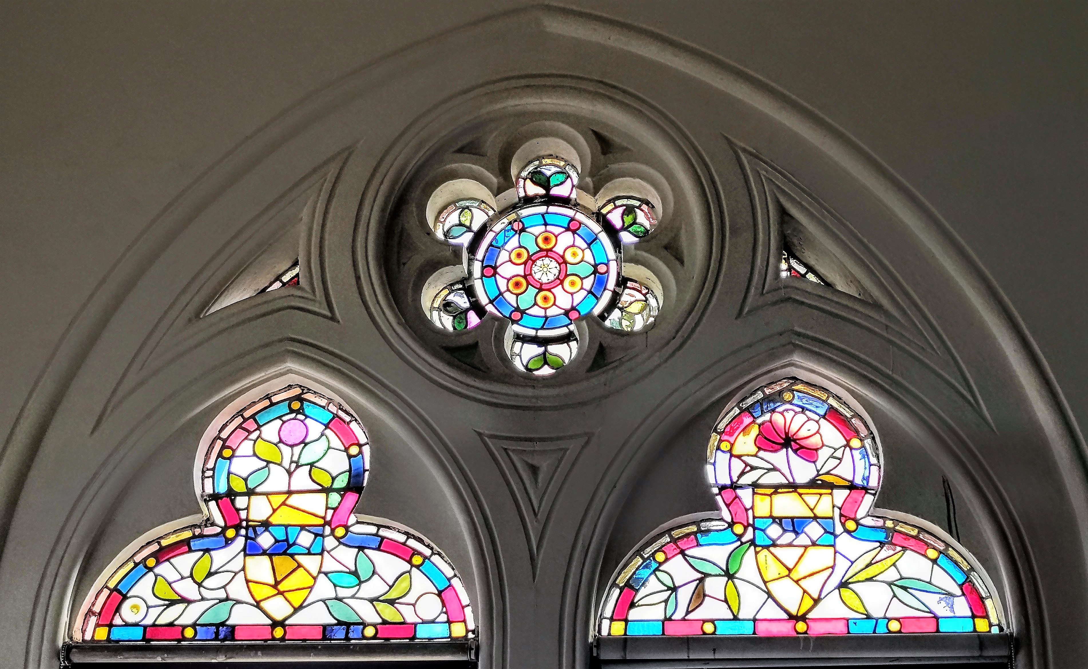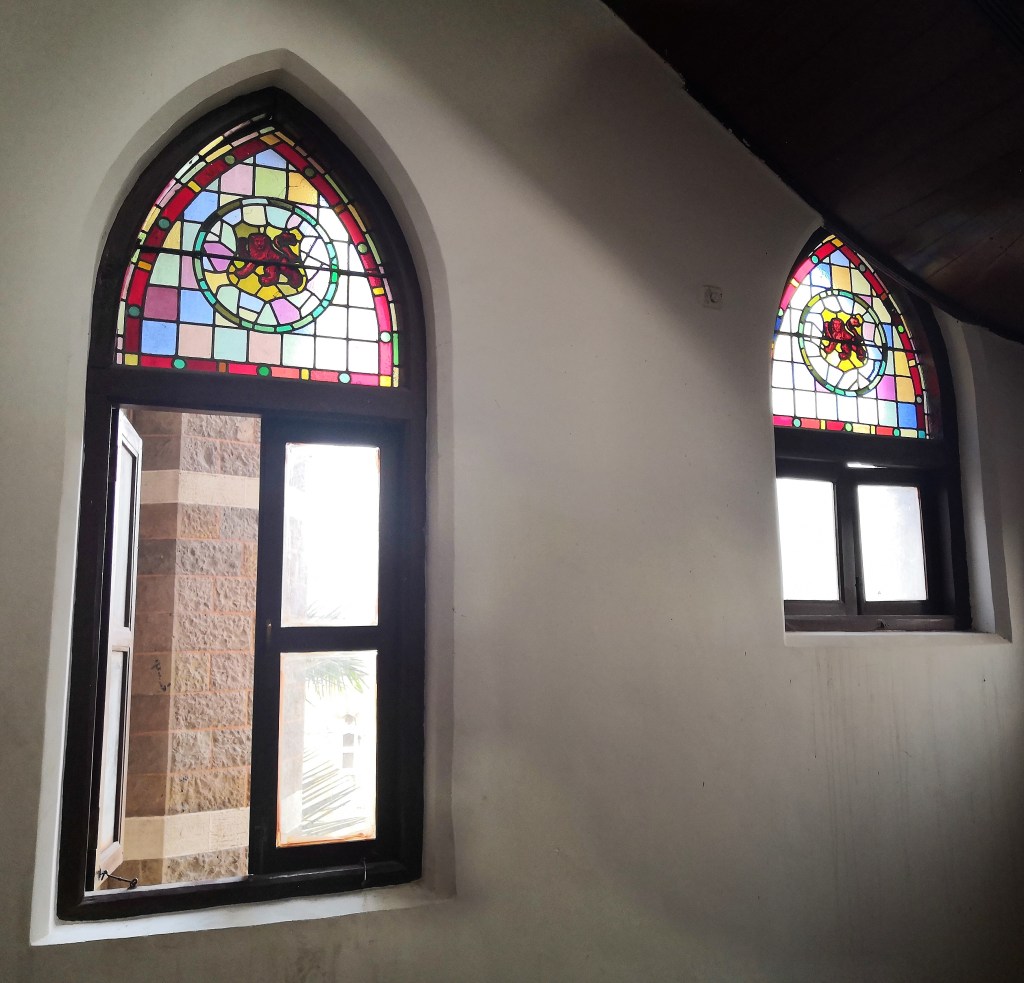 Stain glass windows line the lengthy corridors casting an ethereal light as we pass by.