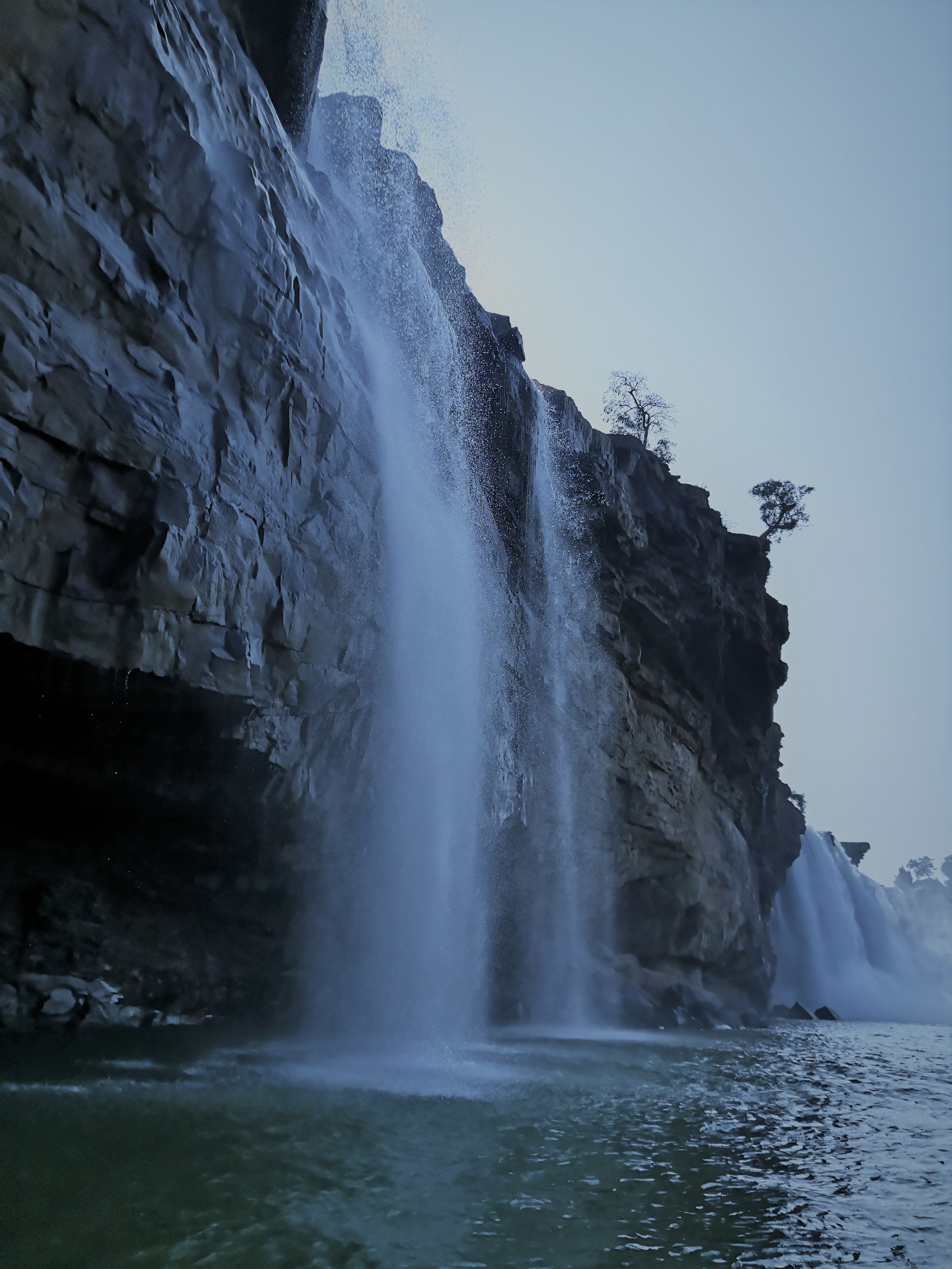 The soft glow of a full moon lights up the cascading falls. Its faint gushing sound allows me to relax after the long bike ride over the winding roads of Bastar.