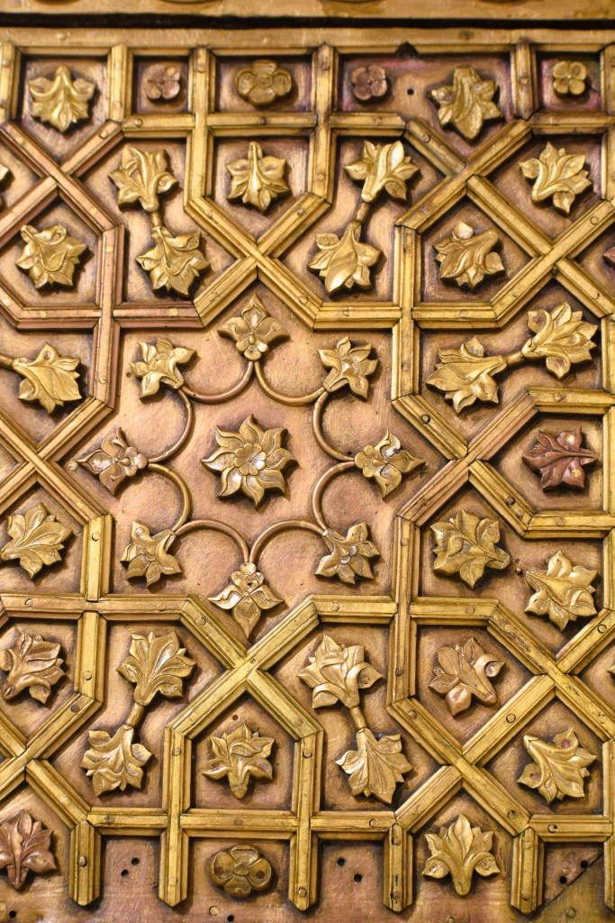 Marble and basalt are used to build the mausoleum. Detailed carvings and designs are seen inside and outside.