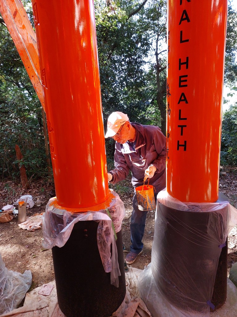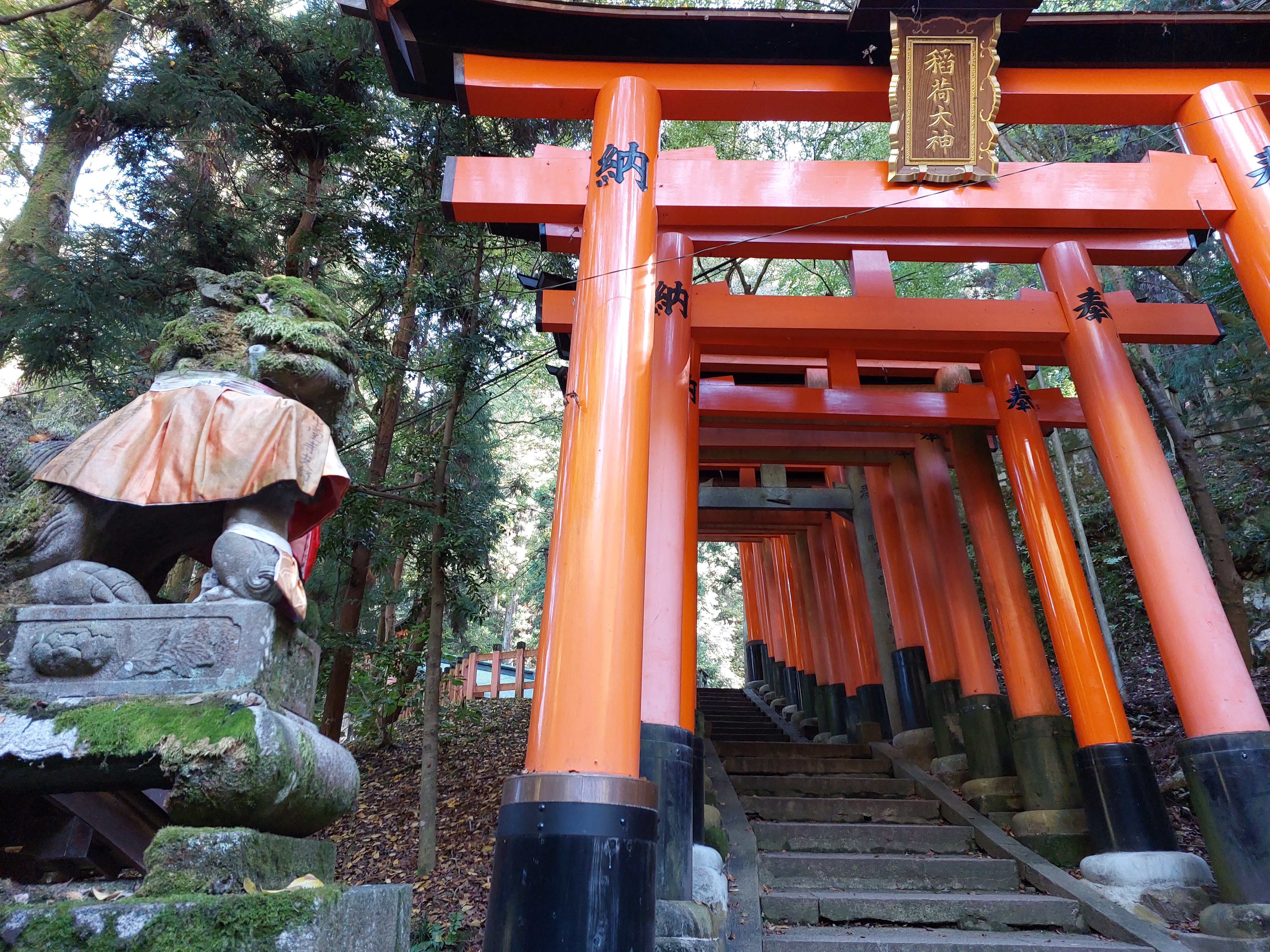 Walking downhill through them felt different from starting at the base. Each gate framed the path like a portal. The repetition of color and shadow created a rhythm, almost like walking through time itself.
