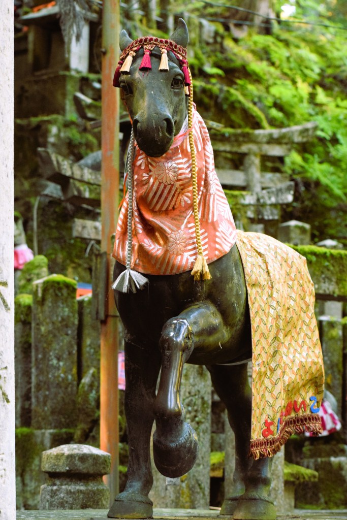 As we continued upward, we reached a shrine near the top. It featured a statue of a horse. The horse was silent and dignified, gazing out over the hillside. The climb had been steady, but never overwhelming. Instead, it felt meditative.